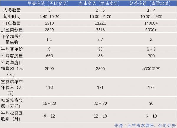 为了更直观的比较“连锁业态”下不同公司的表现,我们选择了业态里较为成熟的两种模式进行对比:卤味食品与奶茶。
