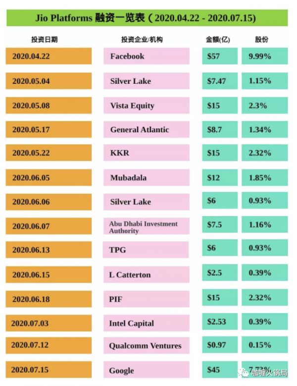 今年以来,Jio Platforms成了海外投资巨头的主要目标,在今年4至7月,3个月内从13位投资人手中筹集了200多亿美元,包括谷歌、Facebook、KKR等。Jio Platforms早已成为了名副其实的“吸金大王”。持续的“吸金”也让Mukesh Ambani再次登顶亚洲首富的位置,个人资产超过马云。