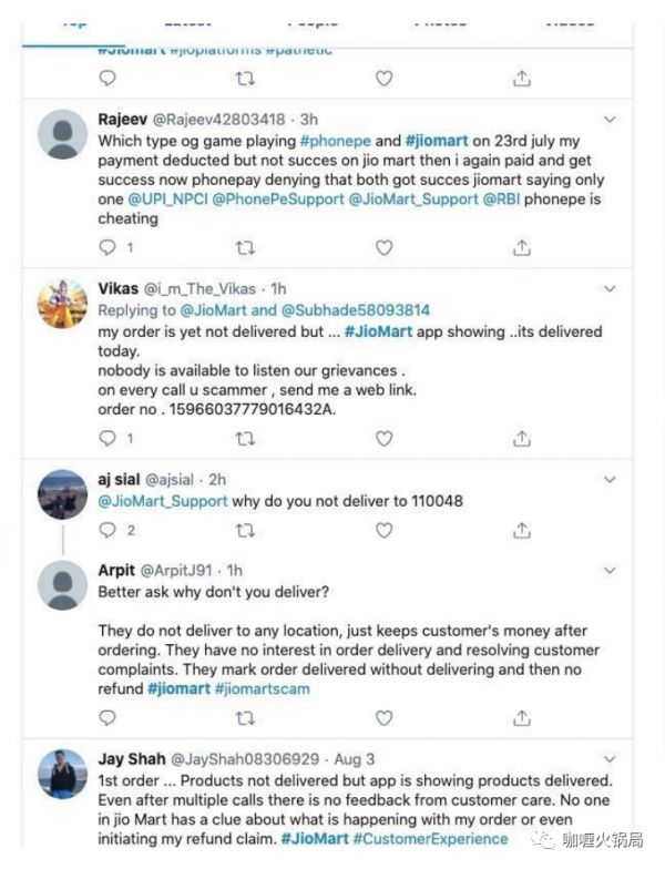 Twitter推特上用户对JioMart的投诉