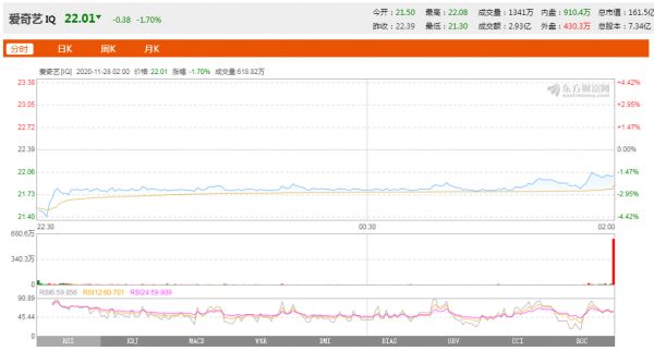 11月27日,多家媒体报道了一则消息:阿里和腾讯洽谈爱奇艺收购暂缓。消息释出的当夜美股市场,爱奇艺低开4%,当日收跌1.7%至22.0美元/ADS。
