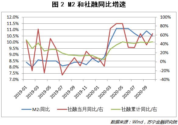 从流动性来看(见图2),今年在新冠疫情发生后,我国的货币政策提前发力,为金融市场和实体经济注入了充足的流动性。虽然自7月份开始,宏观流动性边际收紧,但是央行仍时刻关注并呵护整体流动性,实时对流动性进行微调。今年M2同比增速自3月份以来持续维持在10%以上,社会融资规模截至10月份累计同比增加44.5%,市场并没有出现流动性紧张的状态。而从融资成本来看,实体经济的融资成本显著降低,9月份企业贷款利率下降至4.63%,比去年同期下降了0.61%,新发放的普惠小微企业贷款平均利率为4.92%,比去年年底下降了近1%;且融资明显向制造业和小微企业倾斜,房地产新增贷款占比显著下降,融资结构改善。在流动性和融资成本友善的情况下,企业整体的再融资压力不大。