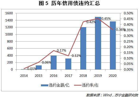 自2014年首只公募债违约打破刚兑以来,我国信用债违约经历了两段高峰期,第一段是2015年-2016年,违约率从0.01%上升至0.17%,违约主体主要集中在产能过剩行业;第二段是2018年-2019年,违约率从0.12%上升至0.45%,主要集中在弱资质的信用主体和伪国企等。但值得关注的是,每次违约潮爆发后,货币政策均出现了边际上的放松,从而缓解了信用危机。今年以来(截至11月26日),整体信用债的违约率为0.36%,低于去年同期水平,整体信用风险可控(见图5)。