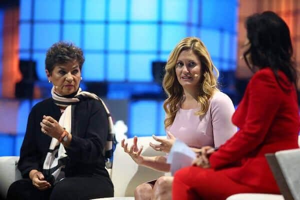 克里斯蒂安娜·菲格雷斯(Christiana Figueres)和凯特·布兰特(Kate Brandt)在2019全球网络峰会中心舞台。图片来源:Vaughn Ridley/2019全球网络峰会