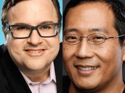 雷德·霍夫曼(Reid Hoffman)(左)和叶嘉新(Chris Yeh)。图片来源:全球网络峰会