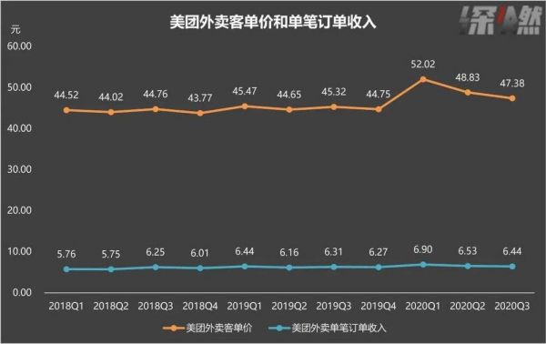 美团外卖在三季度总共撮合了32亿笔订单,客单价47.38元。今年以前,美团外卖的客单价一直在46元以下,今年因为疫情导致餐饮线上化加速,一季度美团外卖客单价一度高达52.02元,二季度回落到48.83元。目前外卖客单价整体要高于疫情前。平均每笔外卖订单,能够给美团带来6.44元收入。
