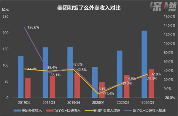 三季度,美团外卖收入207亿元,同比增长32.8%。
