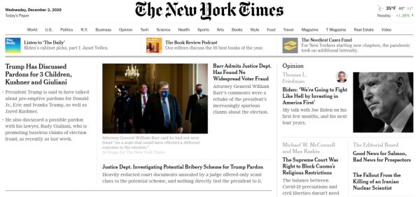 随着进入未知水域,《纽约时报》已经变成了一台实验机器。它经常引进新技术来生产更多的产品并吸引读者,始终坚持把报纸编辑正直的高标准作为自己的核心价值观。