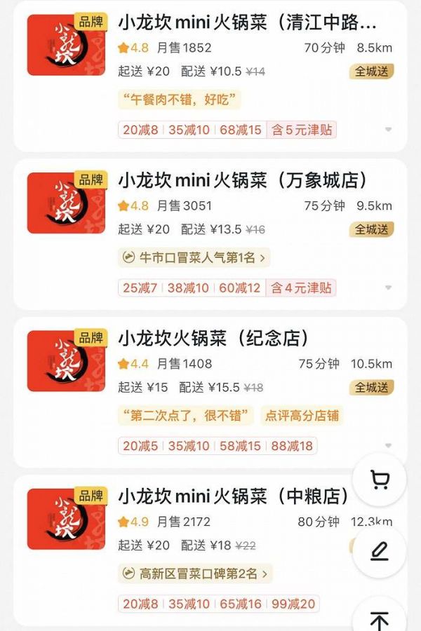 彼时,小龙坎总经理苏小强在接受《北京商报》采访时曾表示,冒菜比火锅更适合外卖,不仅因为冒菜的分量较少,加工方式比较简单,还因为冒菜在经过配送过程后口味会变得更加浓郁,因此比很多中餐品类都适合外卖这个场景。