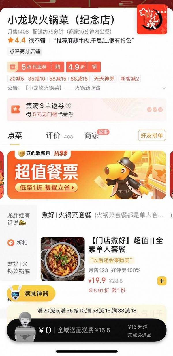 不过这并不是小龙坎第一次涉足冒菜业务。早在2019年3月,小龙坎就在外卖平台上线了“小龙坎火锅菜”。