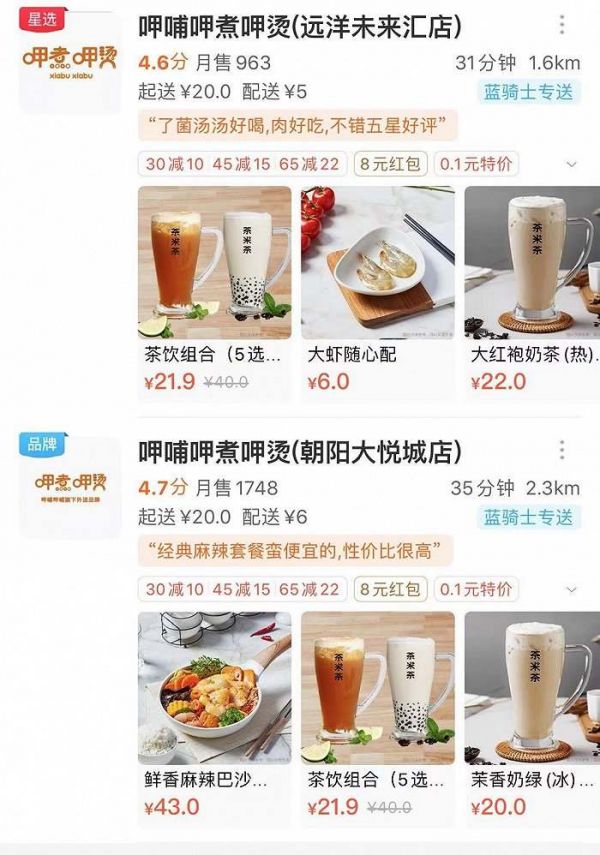 呷哺呷哺也在2017年上线了“呷哺呷烫”的副牌火锅冒菜外卖店。