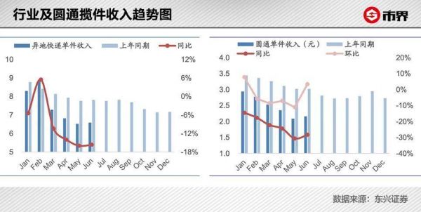 根据东兴证券的研究报告显示,今年年初至今,电商件领域爆发了极其激烈的价格战,异地件单件下滑高达15%,单件收入较去年下降1元多。通达系快递总部的单件收入,普遍从去年同期的3元跌至今年的2元出头,降幅也达到近1元,同比降幅近30%。