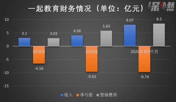 首先是持续亏损,且亏损的幅度逐年加大。一起教育在2018年、2019年以及2020年前九个月间分别亏损了6.56亿元、9.63亿元、9.74亿元,不到三年时间亏损了25.93亿元。