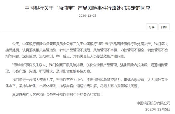 经过一段时间调查,中国银行"原油宝"事件处罚结果公布。