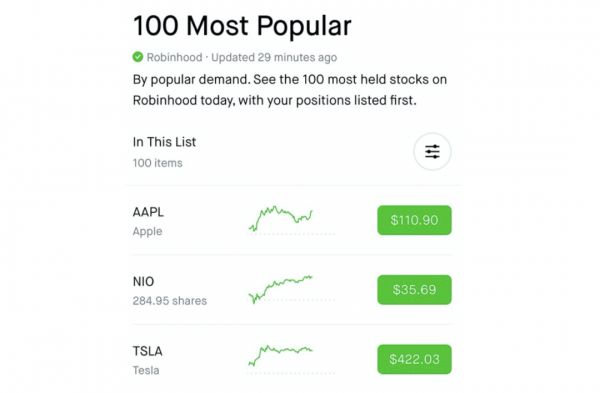 Robinhood热门股票榜单