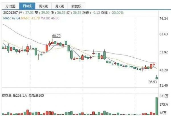 12月7日开盘,沃森生物毫不意外大跌,截至收盘,报36.53元/股,市值蒸发超过140亿元,上百只基金被闷杀。