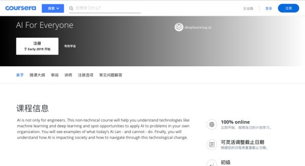 deeplearning.ai 说是一家创业公司,倒不如说是吴恩达在线 AI 教育平台 Coursera 的一个分支,吴恩达之前推出的“AI for everyone”课程就发布在这个网站;