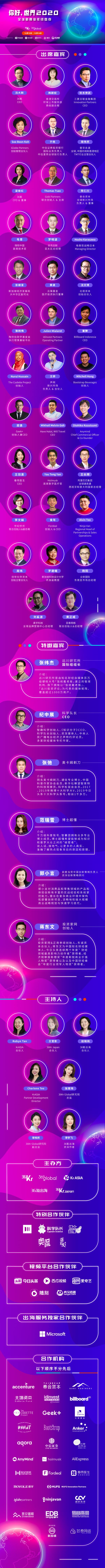 本着回顾与展望的初心,2020年12月15、16日,36Kr Global 将推出「你好,世界 2020」年终盛典。其中分为四个主题,Part 1“2020全球商业盘点”,Part 2“新兴市场创投”,Part 3“中国企业全球化”,Part 4“热门产业趋势”。