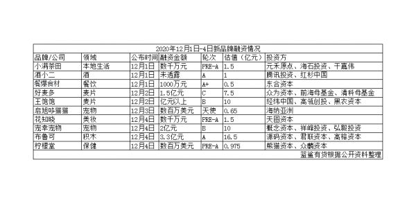 似乎是回应上述观点,12月1日-4日,据蓝鲨有货统计(见表1),总计有10家新品牌企业获得融资,总估值超50亿元,平均每家估值5亿元,其中最低估值5000万元,最高估值16.5亿元。