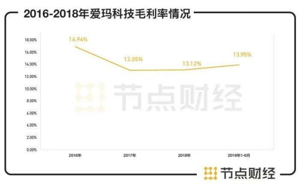 毛利率是最能反映公司竞争力的指标之一。爱玛科技招股书中显示,2016—2018年公司毛利率分别为16.94%、13.05%、13.12%,2019年上半年为13.95%。而同行雅迪股份的毛利率始终在18%左右。这一点与竞争对手相比,爱玛科技稍逊一筹。