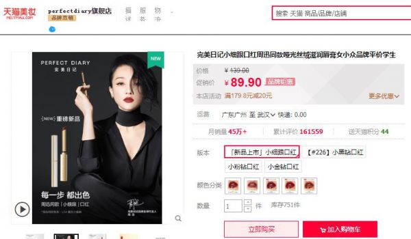 上述产品经过小红书种草、明星造势、KOL带货已成为完美日记爆款单品,在品牌天猫旗舰店月销量均已过万,其中“小细跟”月销高达45万+。