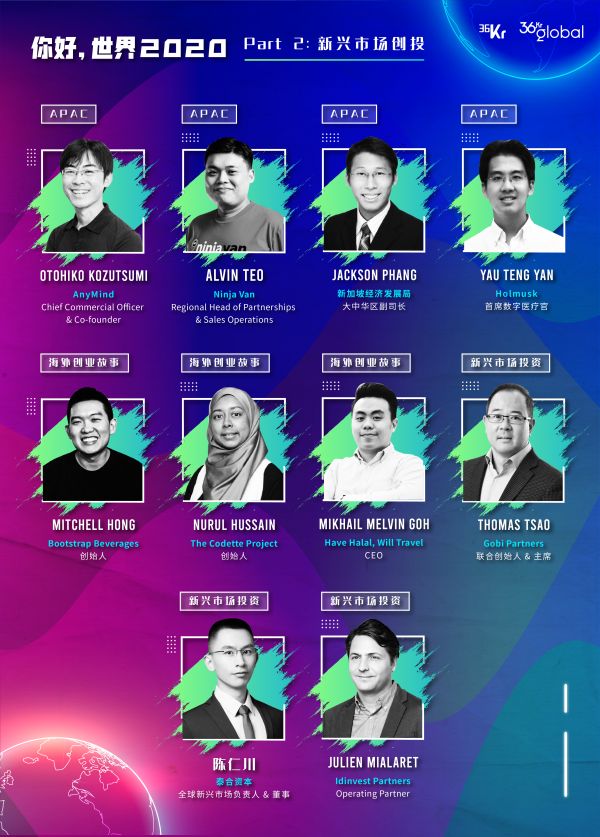 本次「你好,世界 2020」年终盛典 Part 2 “新兴市场创投”将于12月15日14:45正式和大家见面,欢迎点此关注36氪直播间,一键直达活动现场。