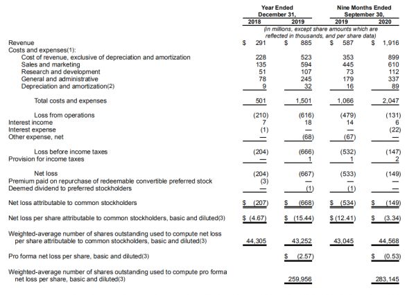 不过,光鲜背后,DoorDash也有隐忧。从财务数据看,2018年和2019年,DoorDash的净收入分别为2.91亿美元和8.85亿美元;2020年前三季度的净收入则为19.16亿美元,较2019年同期的5.87亿美元增长223.7%。