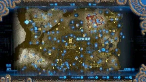 《旷野之息》游戏地图,每个被标注的点都是互动元素,实际远不止此。