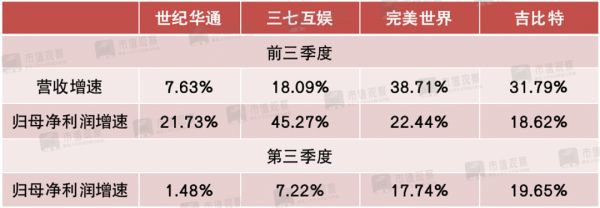 从上表看,世纪华通和三七互娱第三季度归母净利润增速已降至个位数,分别同比增长1.48%和7.22%。完美世界和吉比特第三季度归母净利润尽管维持两位数增速,分别同比增长17.74%和19.65%,但与市场预期仍存在一定差距。
