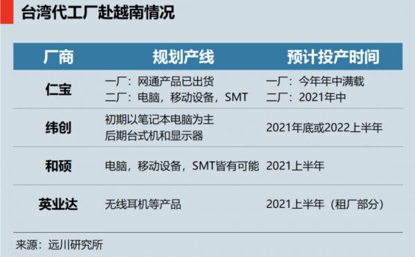 “仁宝”重启了在北越永福的工厂,网通产品一厂即将满载,生产PC的二厂也将在明年年中投产。一些心急的企业甚至等不及买地建厂。比如通信设备厂商“启碁”则直接租下汉达精密的一间厂房,毕竟再晚一两个月,美国大客户可能就保不住了。