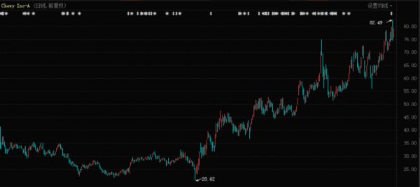 从美国宠物电商品牌Chewy的股价可以窥得一二。Chewy自上市以来股价一路走高,最高涨幅超过一倍,业绩的增速同样十分强劲,市值超过320亿美元(约合人民币2100亿元以上)。