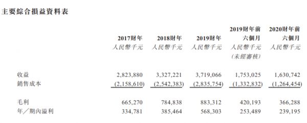 汇森家居公开披露的资料显示,招股书显示,2017-2019财年,公司收入分别为28.24亿元、33.27亿元和37.19亿元。期内利润分别为3.35亿元、3.85亿元和5.68亿元。截止至2020财年前6个月,该公司收入为16.3亿元,期内利润为2.39亿元。