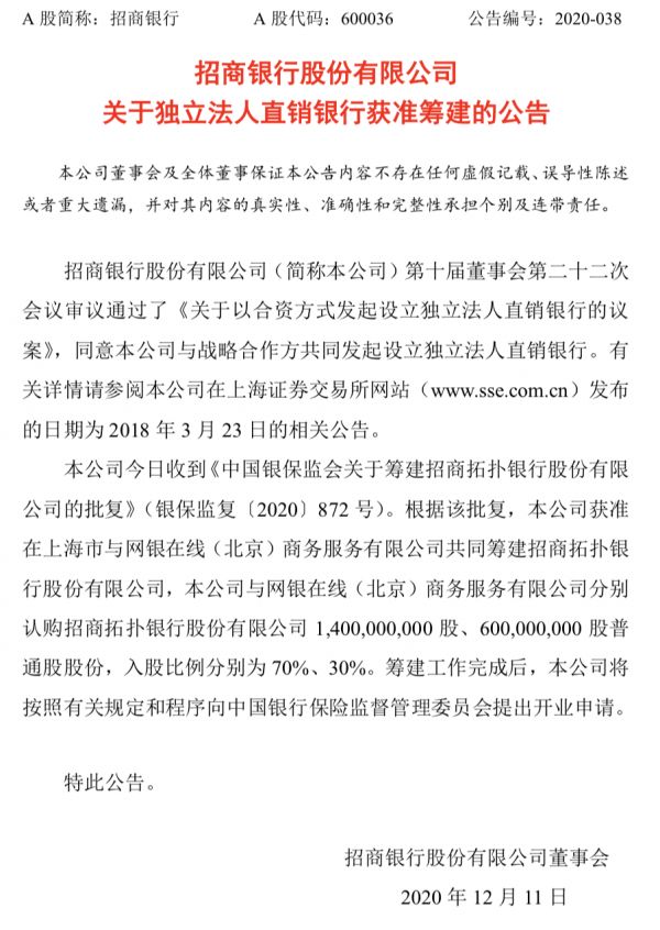 不过,此次招行发布直销银行获批的消息还是获得了极高的关注度。除了合作方也是头部互联网公司之外,想来一个很重要的原因是外界对于「招行要做一家新银行」充满了期待。