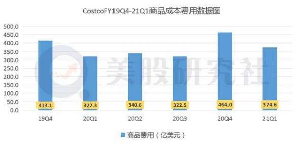 不过,值得注意的一点是,在本季度商品销售额增长的同时,本季度商品的费用成本也在大幅上涨。据上图数据,一季度Costco的商品成本支出为374.6亿美元,占据总收入的比重为85%。