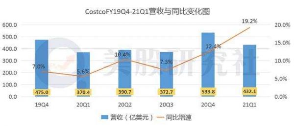 从本季度的财报数据看,一季度Costco的营收为432.1亿美元,相较于上一季度的370.4亿美元,同比涨幅为19.2%;与上一财季的533.8亿美元相比,环比降幅为19.1%。