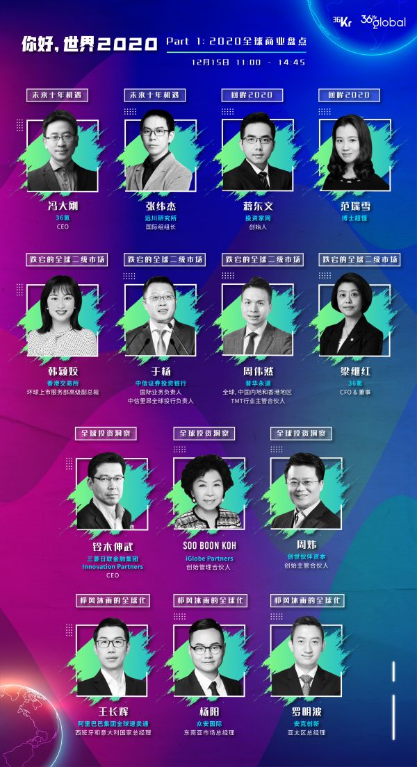 这一年需要被解读和总结,应当被铭记和回顾。由 36Kr Global 主办的「你好,世界 2020」年终盛典将在明天重磅推出。这场历时两天的活动,围绕着四个 Part 展开,分别是 Part 1 “2020全球商业盘点”,Part 2 “新兴市场创投”,Part 3 “中国企业全球化”,Part 4 “热门产业趋势”。