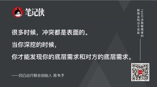 很多时候,冲突都是表面的。当你深挖的时候,你才能发现你的底层需求和对方的底层需求,但这个深挖的过程是需要努力的。