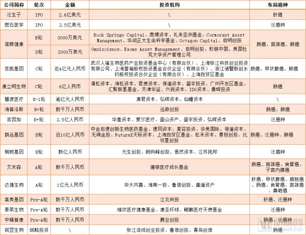 1、大量资本涌入癌症早筛赛道,10笔融资额过亿,资本会逐渐向头部企业聚集;