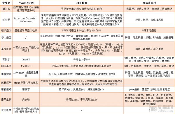 国内部分正在布局泛癌种早筛的企业(数据来源:动脉橙)