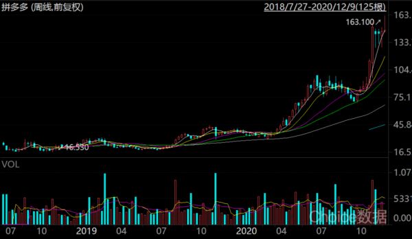 拼多多股价表现 来源:东方财富Choice数据