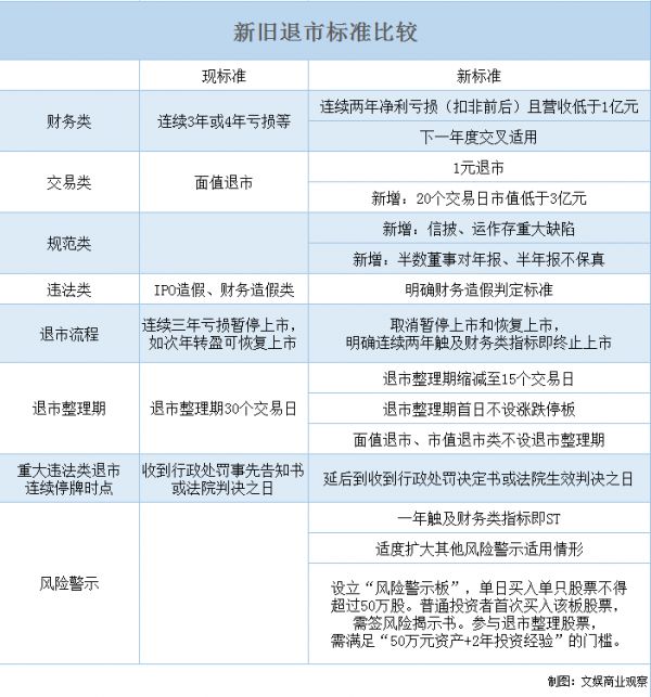 14日晚间,上交所、深交所分别就退市公司重新上市实施办法向社会征求意见。退市新规包括新增市值退市指标、完善财务类退市标准、严格退市执行以及简化退市流程,以期形成上市公司有进有出、优胜劣汰的市场生态。