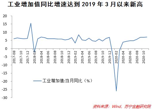工业部门是中国下半年以来经济得以向潜在增速快速接近的主导力量。11月规模以上工业增加值同比增长7.0%,较上月提升0.1个百分点,环比增长1.03%。其中,制造业增长7.7%,引领工业部门复苏。