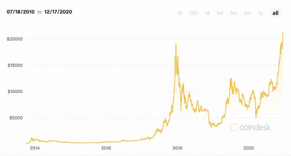 比特币连番暴涨首破2.2万美元背后:机构投资者入场成主因