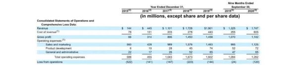 在疫情的推动下,Wish的用户有所增长,营收也相应上扬。招股书显示,Wish2020年前三季度营收17.5亿美元,同比增长了32%。然而,亚马逊、Target和沃尔玛营收同比增幅分别达到37%,155%和79%。与其他零售电商相比,wish的成绩并不突出。