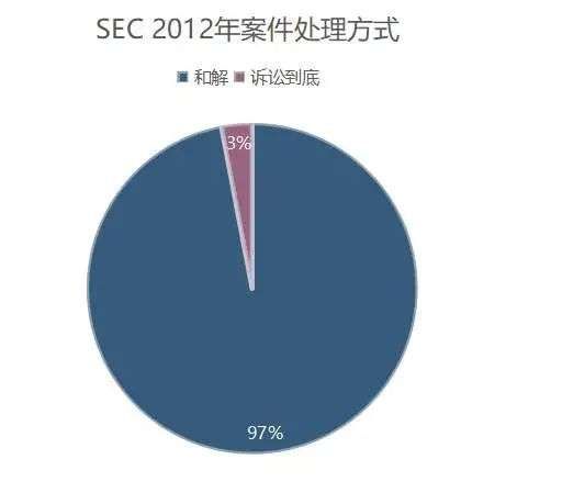 公开资料显示,当下处理超过90%的案件,SEC采取和解方式,譬如在2012年其处理的734件案件中,有712件选择了和解方式,仅有22件采用了诉讼到底方式,和解比例高达97%。