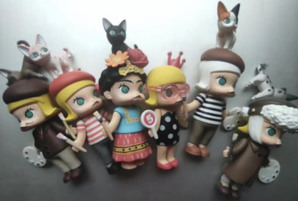 李姝拿着懂懂笔记以80元价格购买到的六只“散货”Molly仔细查看后表示,基本可以断定,所谓的“散货”手办,只是几只制作工艺十分低劣的山寨、高仿产品,即盲盒收藏圈俗称的“祖国版”公仔。