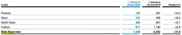 根据宝马集团财报显示,今年上半年劳斯莱斯全球销量为1560辆,同比去年的2502辆,明显减少。其中,古斯特承受压力最大,相比之下库里南情况最好,已成为劳斯莱斯销量支柱,占比近六成。