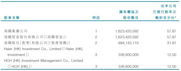 根据2019年年报,海尔智家持有海尔电器57.87%已发行股本,是海尔电器的主要股东。