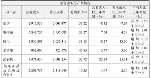 导致这一结果的原因并非市场传言的“白色家电中空调毛利率最高,而空调对海尔的营收贡献在三家企业中最低”。从2019年海尔智家的年报中可以看出,空调的毛利率低于电冰箱、洗衣机这两大海尔的营收支柱,更是远低于水家电。美的2019年年报显示的空调毛利率也仅有31.75%。