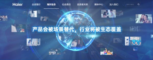 在海尔官网“海尔生态”标签下,赫然写着海尔开启这一阶段战略的理由:“产品会被场景替代,行业将被生态覆盖。”