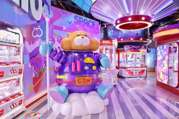 十二栋文化线下门店“LLJ夹机占”的形态也有了新的变化,1.0形态是红白两色设计+娃娃机,希望能够直白唤醒用户对于玩的记忆,2.0形态是运用渐变的颜色设计,店内铺设显示屏等用数字化模式显示IP的设备。而如今“LLJ夹机占”3.0则是将店铺内部设计更加风格化,增加了拍照墙等互动版块,专设5-8平米的盲盒售卖区域,并加入轻餐饮的模块。